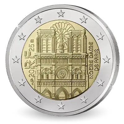 Het ontwerp op de voorzijde toont de majestueuze westgevel van de kathedraal, met haar iconische torens en het beroemde roosvenster dat de brand op wonderbaarlijke wijze overleefde. Elk detail van het gotische maaswerk is met uiterste precisie in reliëf geslagen. Op de achtergrond ziet men de herstelde spits, die opnieuw de Parijse skyline siert. De andere zijde draagt de gemeenschappelijke Europese koerszijde, symbool voor onze gedeelde cultuur en geschiedenis. Deze herdenkingsuitgifte illustreert hoe een monument haar ziel behoudt, gevangen in een hoogwaardige numismatische kwaliteit.